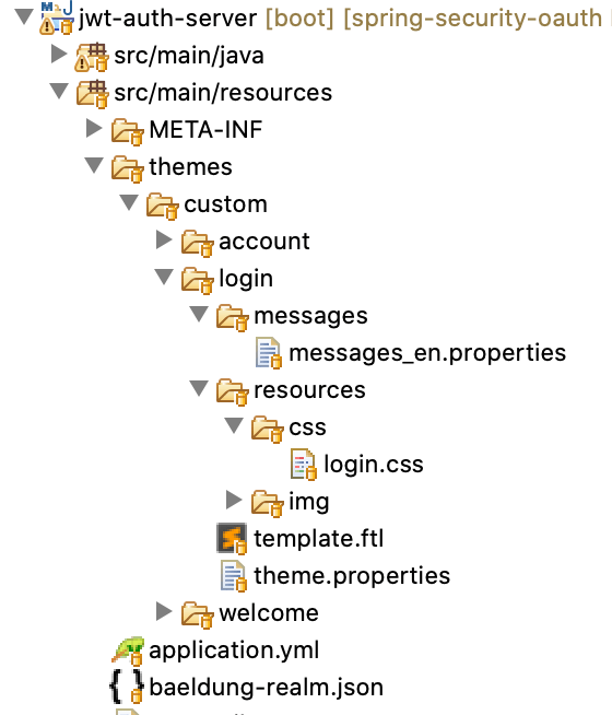 因此,让我们在src/main/resources/themes/custom中创建一个新文件夹login,其中包含以下内容: